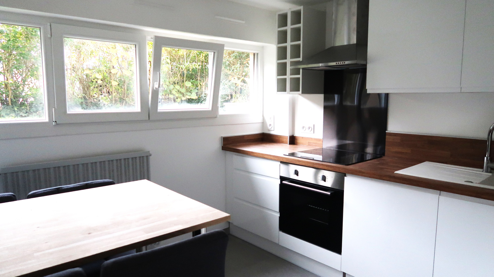 Bel entrée bureau, chambre, chambre individuelle, salon-séjour, cuisine fermée, salle d'eau WC