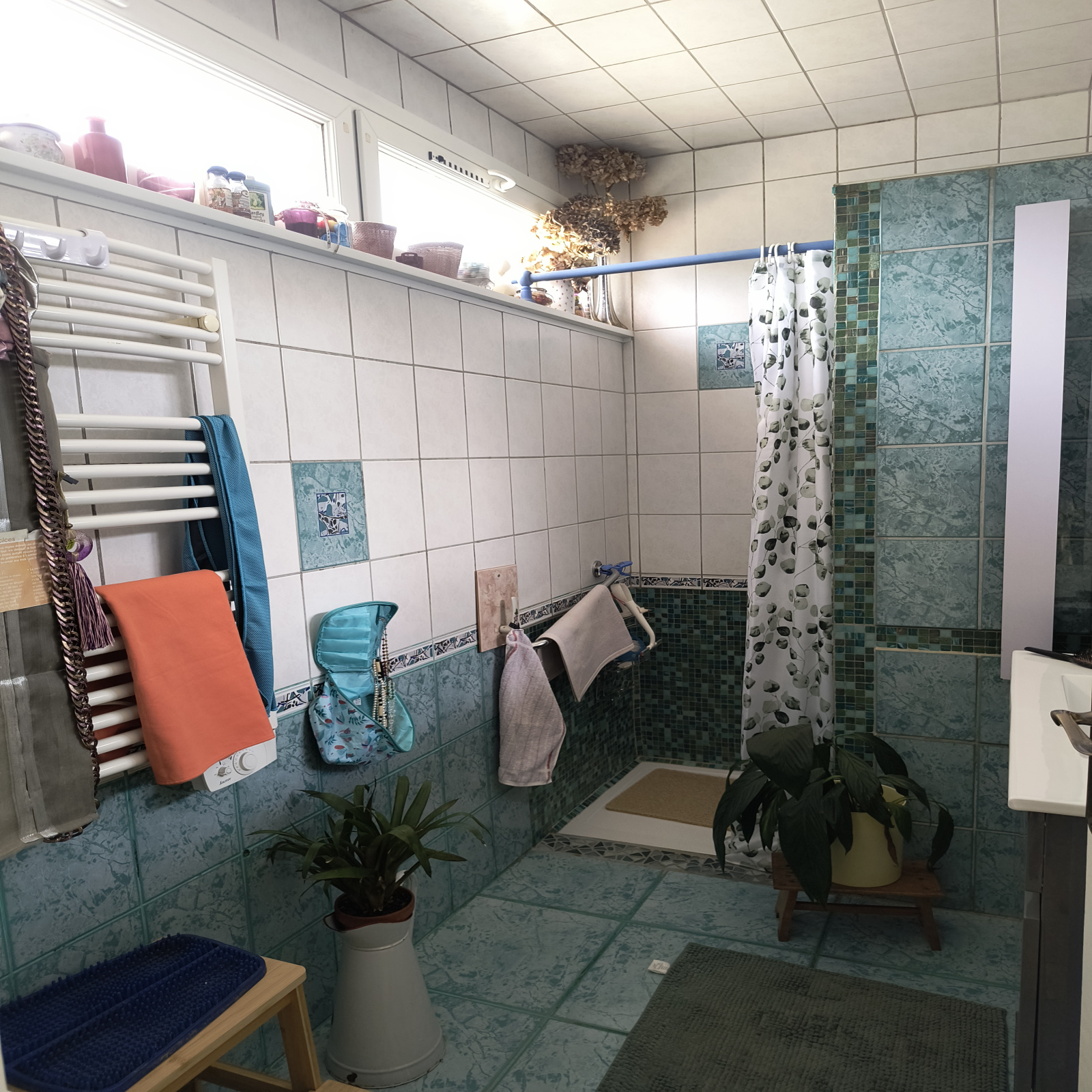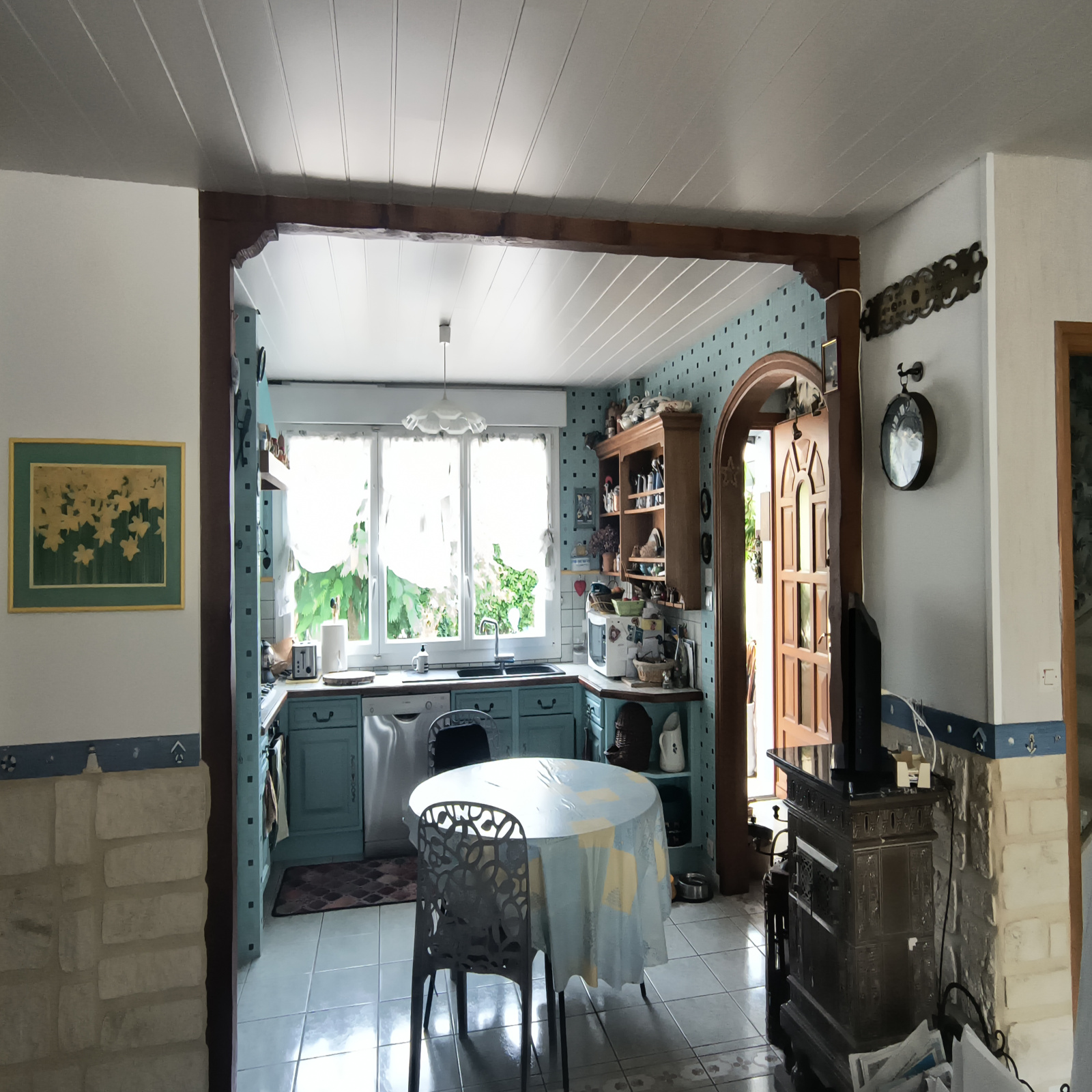 Rez de chaussée : sas entrée/véranda, dégagement amenant sur une cuisine aménagée et ouverte sur séjour avec insert donnant sur une belle véranda avec stores motorisés, sans vis à vis, petit salon bureau avec poële à bois, salle de douche, WC, deux chambres dont une avec WC lave mains, buanderie-cellier ouvrant sur terrasse.