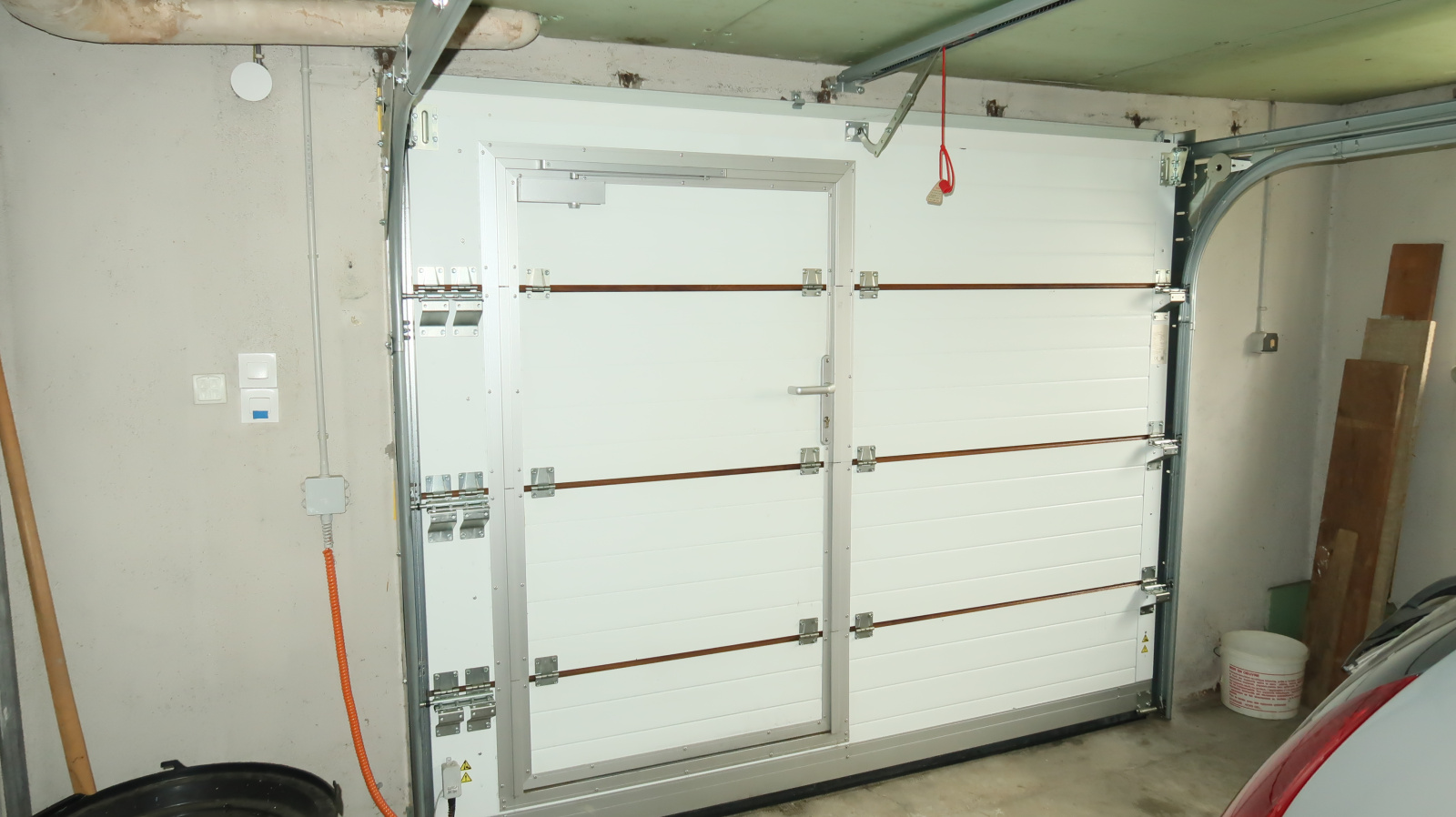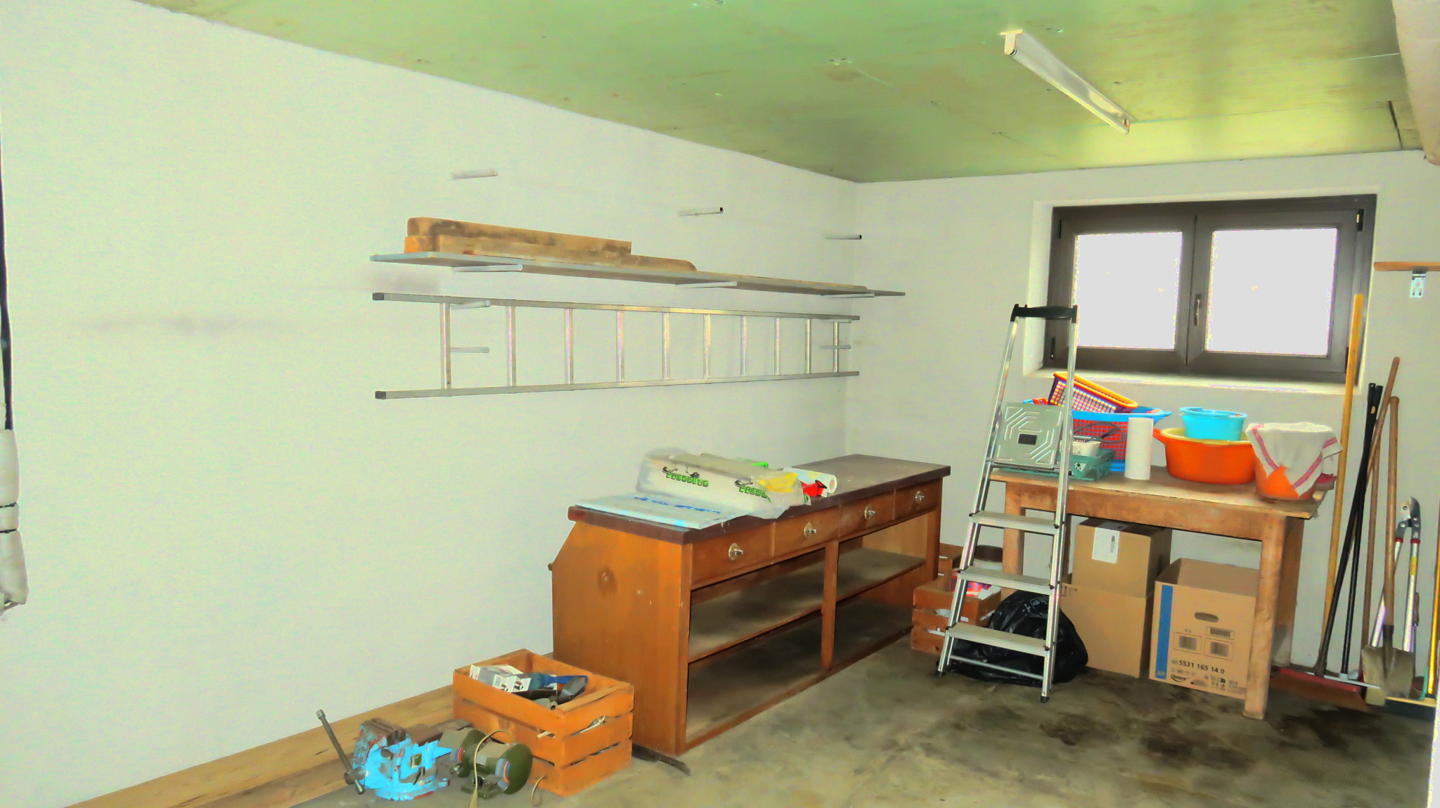 Belle entrée avec escalier donnant accès au 1 er étage (13 m²), bureau (17 m²), chaufferie atelier (16 m²), buanderie avec coin douche et porte d'accès au jardin (14 m²), garnd garage (36 m²) porte motorisée sectionnelle avec portillon,
