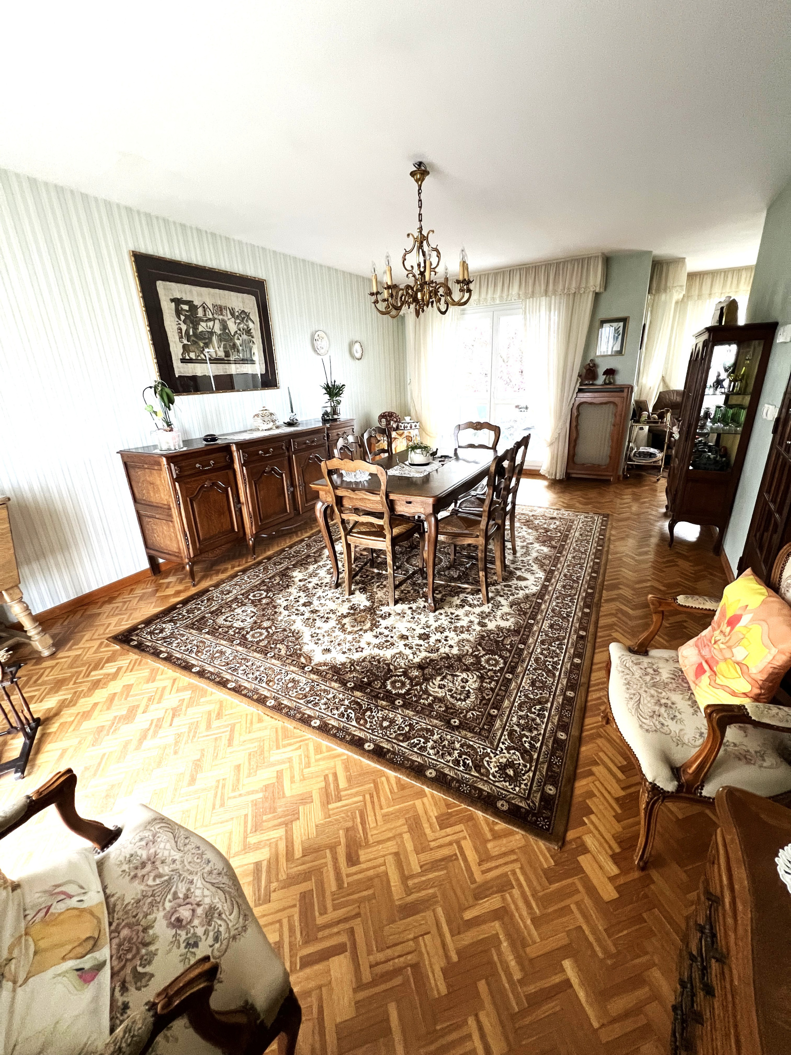 Entrée basse avec accès étage, dégagement, salon séjour traversant avec loggia, salle à manger, cuisine, 3 chambres, WC, salle de bains , placards, 85 m² habitables